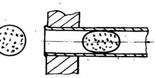目前,凝汽器膠球清洗裝置的膠球廣泛采用的是軟膠球。這種膠球用天然橡膠或合成樹脂制作,質地柔軟,富有彈性。由于膠球直徑比換熱管內徑稍大,一般大約1~2mm,因此,冷卻水流的動壓作用下,膠球進入換熱管后被擠壓成橢圓形(圖1)。依靠膠球與管壁接觸環節的擦拭作用,將管壁上的污垢抹下來,并帶出冷卻管外。由于是整圈的擦抹,也把停留在管壁上的靜止水膜破環,從而提高了管子的傳熱效能。