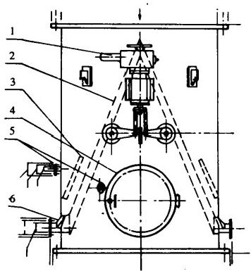 1—電動執行機構2—網板3—導流板4—人孔5—測壓管6—膠球引出管