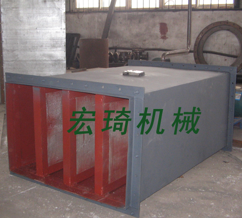 風機消聲器系列產品為阻抗聲流型。本廠根據對發電廠各類風機運行現場噪聲源進行實際測試所取得的瀕特性資料來確定在哪些頻譜范圍內需要多大消聲量作為設計吸聲片結構及流體通道的主要依據,同時采用了具有較大吸聲材料飾面的狹矩形通道,以增強吸收效果。我們知道,風機的噪聲源在最大噪聲級時,其頻譜值往往不止一種,而對不同頻譜帶,對其消聲量要求也不相同。為此本產品采用了對高、中頻噪聲起消聲作用的阻式結構及對中、低頻噪聲起消聲作用的抗式結構,同時在阻式通道中采用了高頻及低頻兩種消聲區,用以最大限度的增寬消聲頻帶,以實現良好的消聲效果。