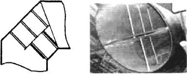 由于現(xiàn)場空間有限,不可能在收球網(wǎng)上方留出相當?shù)闹惫芏危虼耍谀鲗缢畯澒芏沃兴胶附右徊讳P鋼折流板,見圖2。該折流板位于彎管段中心線處,將循環(huán)水流一分為二,用以規(guī)整彎管內(nèi)循環(huán)水流,使循環(huán)水能夠均勻地流經(jīng)收球網(wǎng),以利于膠球收集。