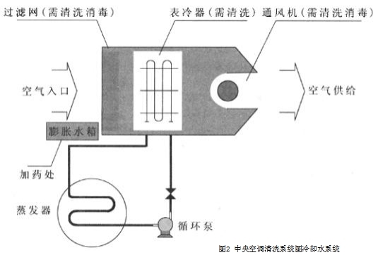 空氣調(diào)節(jié)系統(tǒng)是不容忽視的關(guān)鍵部位見圖245冷凝器系統(tǒng)的清洗范圍冷凝器系統(tǒng)的清洗范圍包括冷卻水系統(tǒng)冷凝器冷卻塔及相關(guān)水管道冷凍水系統(tǒng)蒸發(fā)器風(fēng)機(jī)盤管/表冷器水側(cè)及相關(guān)管道循環(huán)風(fēng)系統(tǒng)過(guò)濾器風(fēng)機(jī)盤管/表冷器風(fēng)側(cè)。