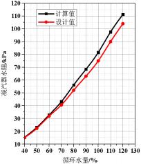 凝汽器水阻是凝汽器冷卻水在水側流動的阻力,一般由凝汽器冷卻管水阻、凝汽器水室及管端水阻組成。對于數值計算模型,設置不同的進口流速能得到不同的水阻,將其與凝汽器設計時測得的實驗數據進行比較,凝汽器水阻的大差值為9.2%,計算結果和設計結果差異較小,模型選用適當。